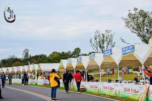 走进多乐拾趣花田乐园,乡村特色产品展台一字排开,特产、美食、文创与传统技艺,尽显乡村特产的独特魅力。